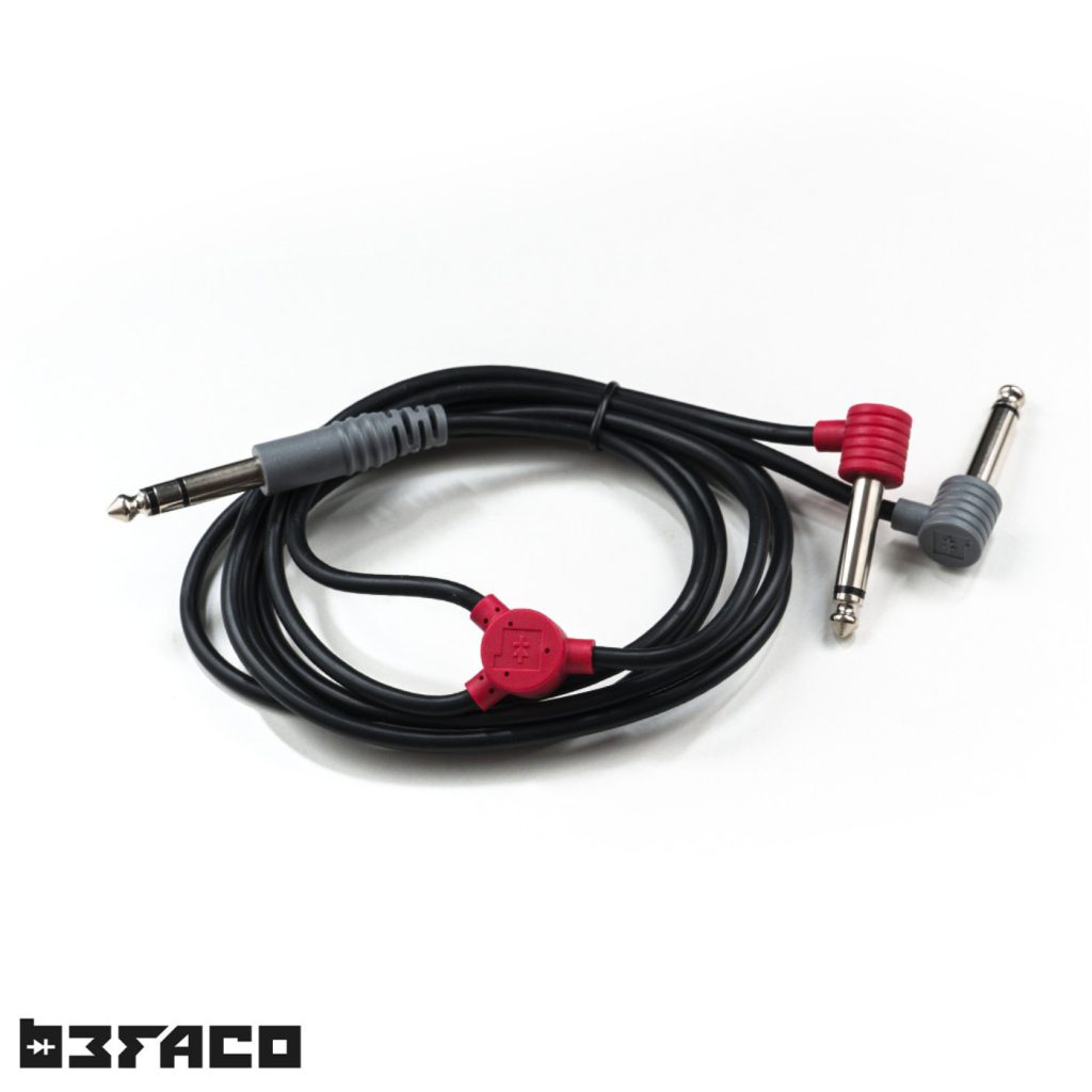 Stereo jack 6.35mm plug to 2x mono right-angle jack 6.35mm plugs. 150cm.