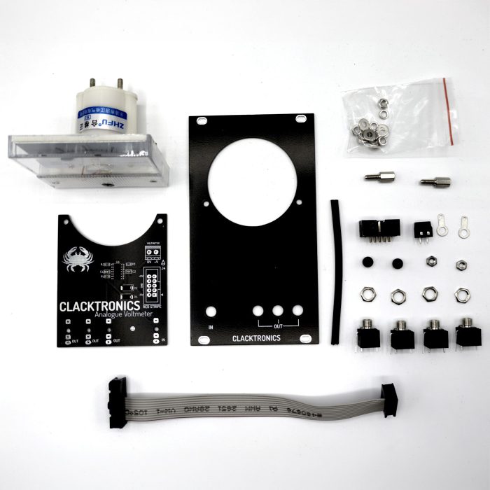 Introducing the Clacktronics Analogue Voltmeter, the perfect addition to your modular setup for those seeking a touch of vintage charm and DC voltage signal monitoring. This kit provides you with the necessary driving circuitry and analogue meter, allowing you to seamlessly integrate a classic voltage needle meter into your rack.
