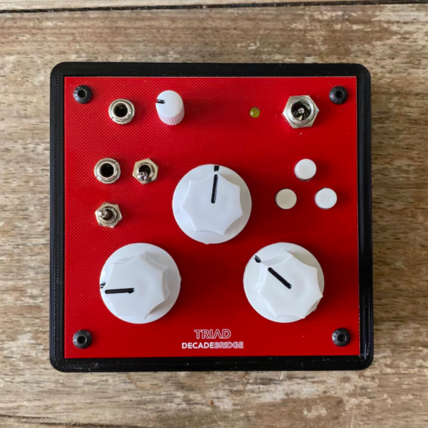 TRIAD works great as part of a drone or noise setup, makes for excellent sample fodder, and thanks to the neat “reset” input it can play along with drum machines and sequencers (especially when paired with a little low-pass gate).