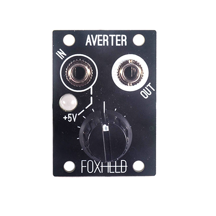 The Averter is an attenuverter that is normalised to +5 Volts. Use it to scale or invert voltage sources, or emit a fixed voltage from -5V to +5V. A bicolour LED indicates the voltage coming out of the OUT jack.