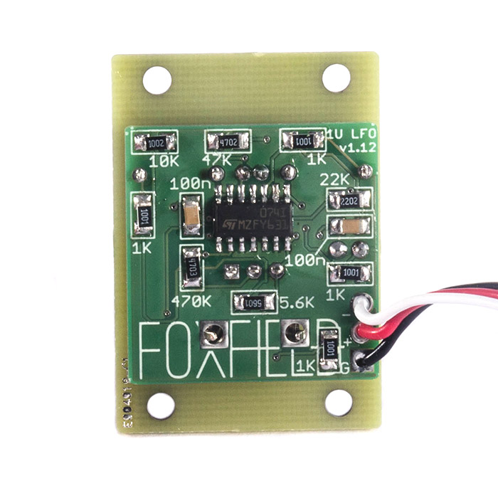 The UtiLFO is a variable utility LFO, emitting synchronised Triangle and Square waves. The LFO rate can be adjusted via the knob on the front panel. A red/green LED indicates the current voltage of the Triangle output.