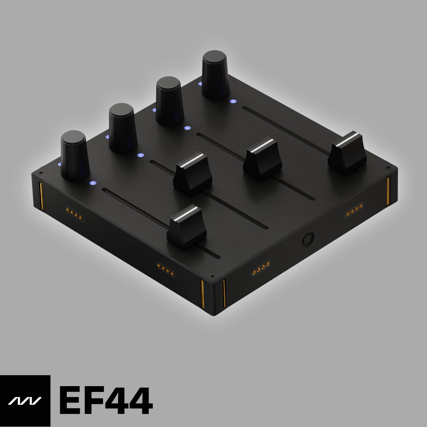 EF44 Series 3 is a USB-MIDI controller featuring 4 x audio-grade linear faders alongside 4 x  endless metal rotary encoders. This combination is designed to give control over performance effects, modulation, panning, and more.