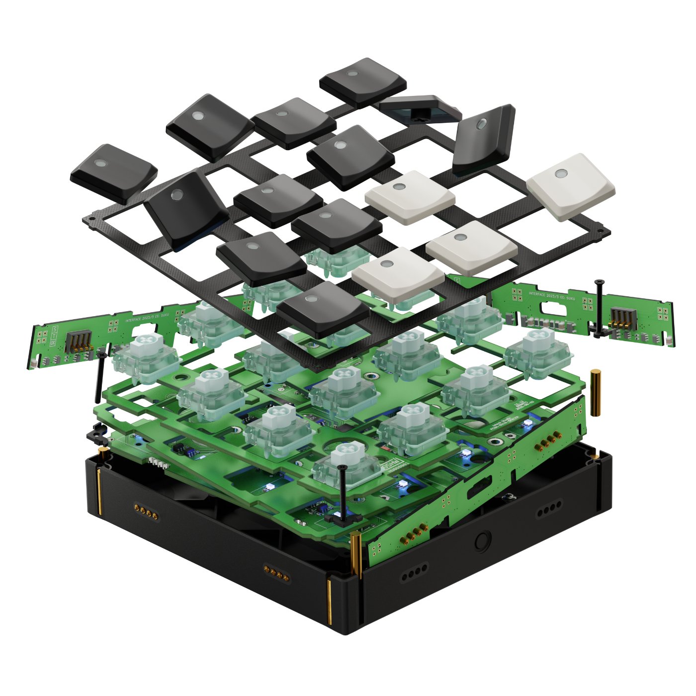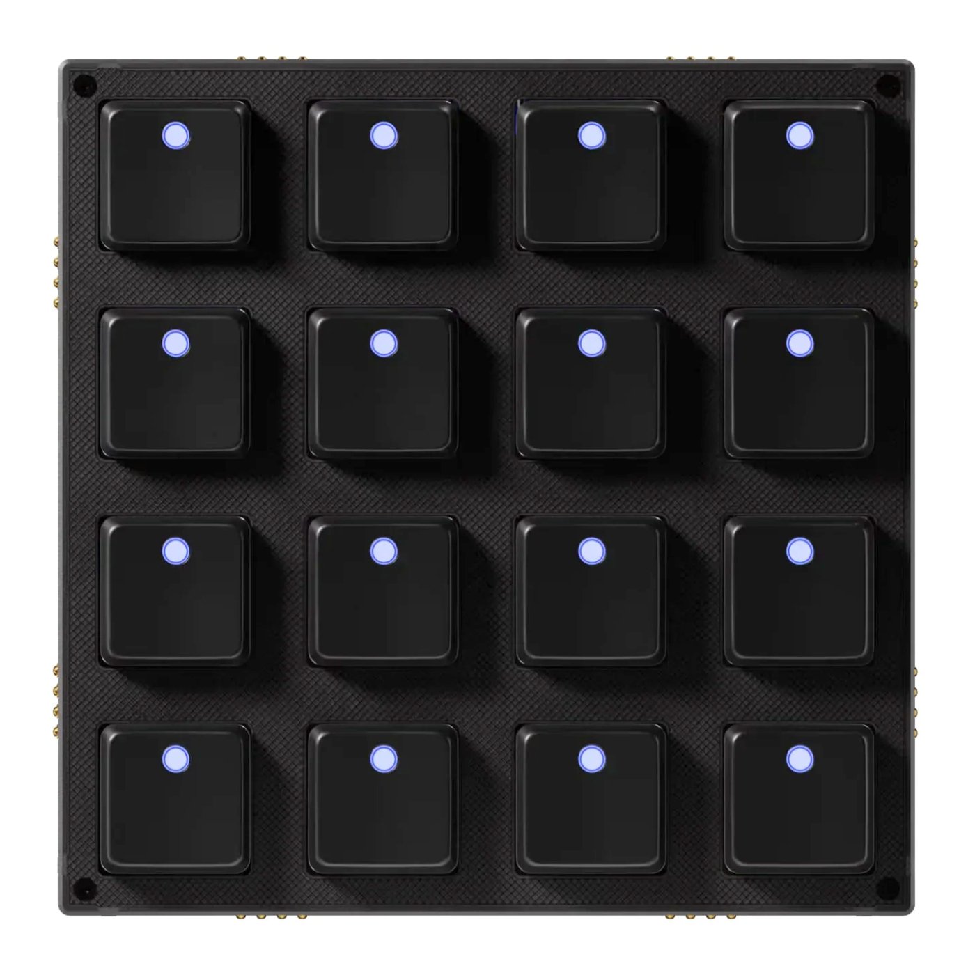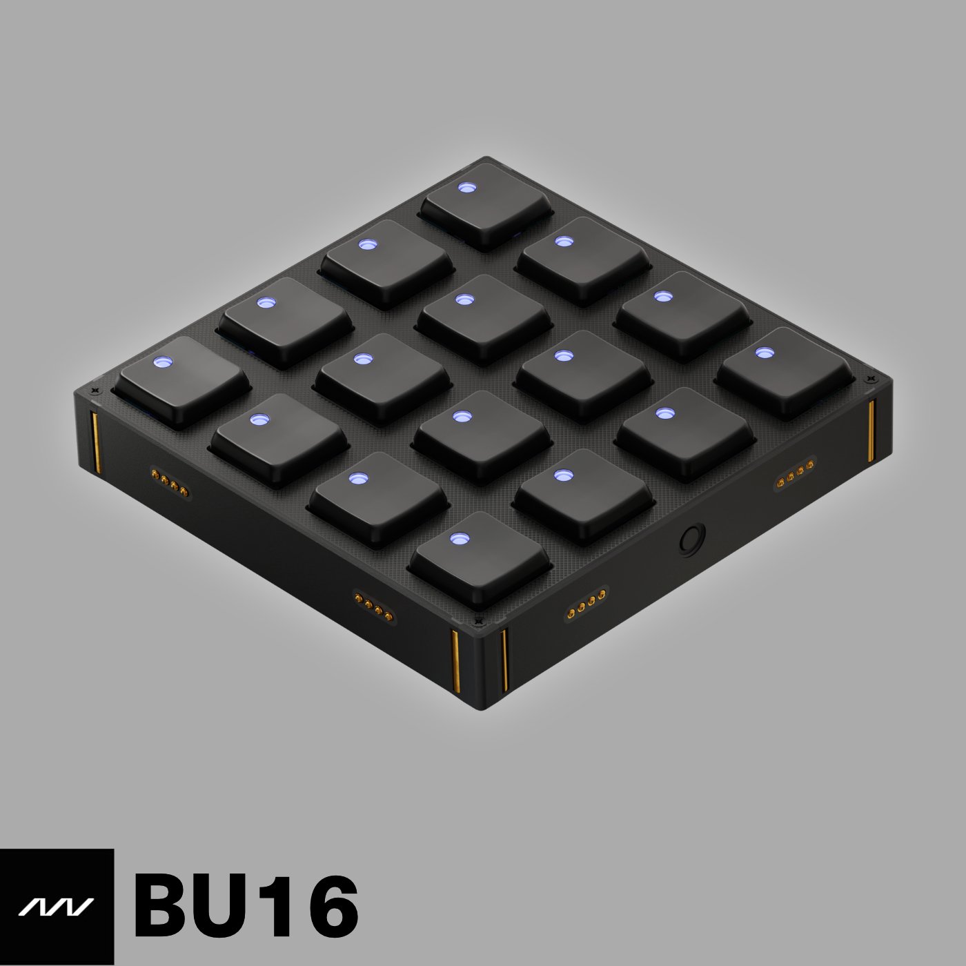 BU16 Series 3 is a compact and expressive button desktop USB-MIDI controller designed for dynamic control in creative environments. It features a 4×4 grid of MX Gateron Hall effect switches, offering velocity and pressure sensitivity for responsive, nuanced input — ideal for triggering samples, launching clips, controlling playback, or finger drumming with more depth.