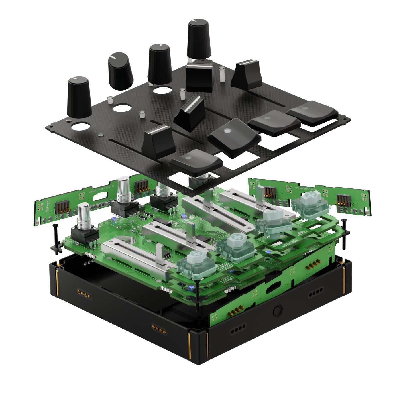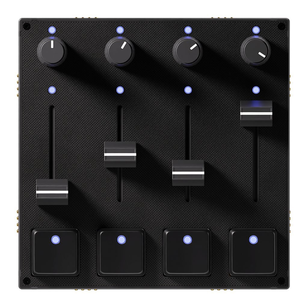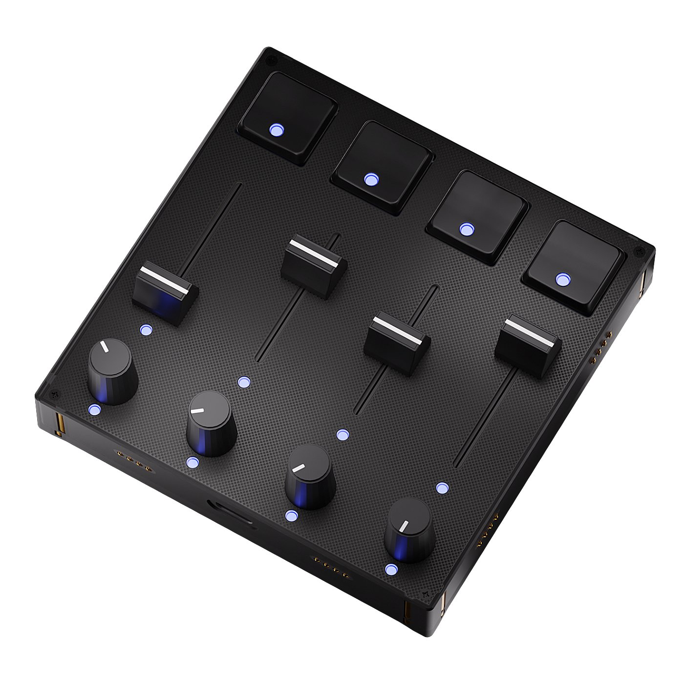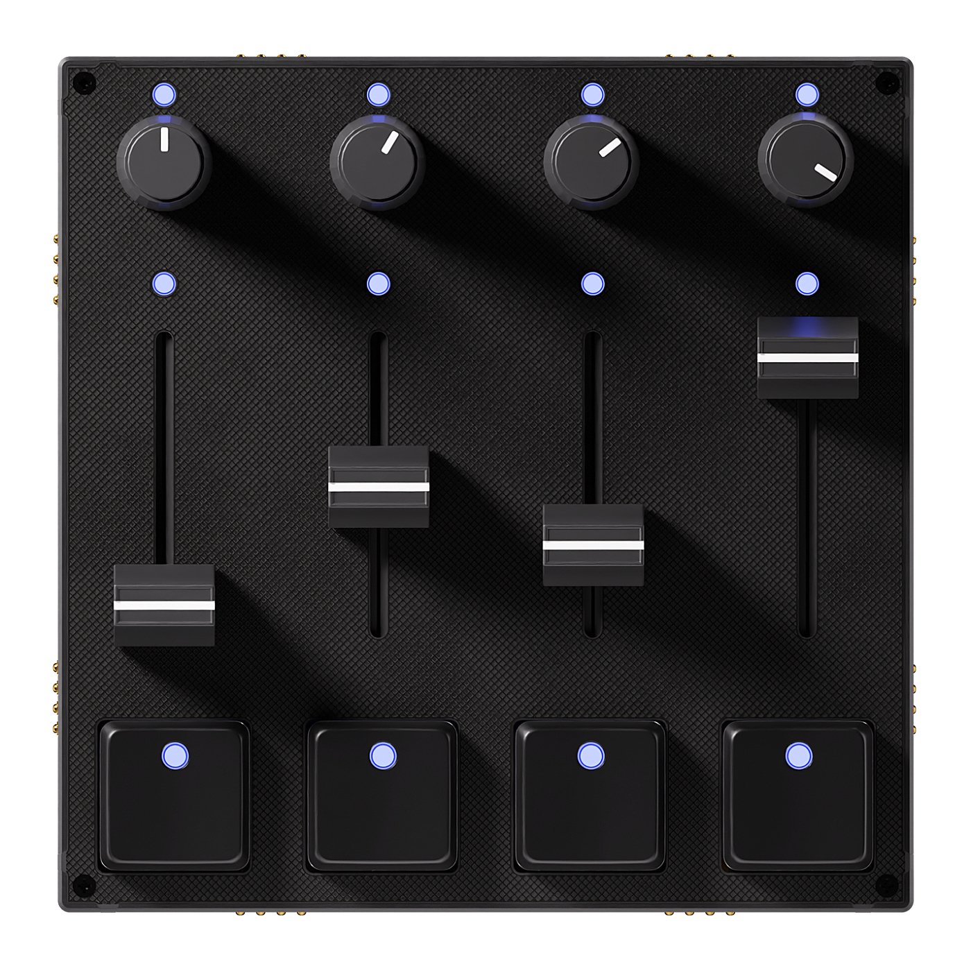 The PBF4 USB-MDI controller features 4 x metal shaft faders with medium resistance, 4 x single-turn smooth-turning metal shaft knobs and 4 x Gateron hall effect key switches. From subtle adjustments to expressive performances, this is a versatile combination of control elements for many use cases.