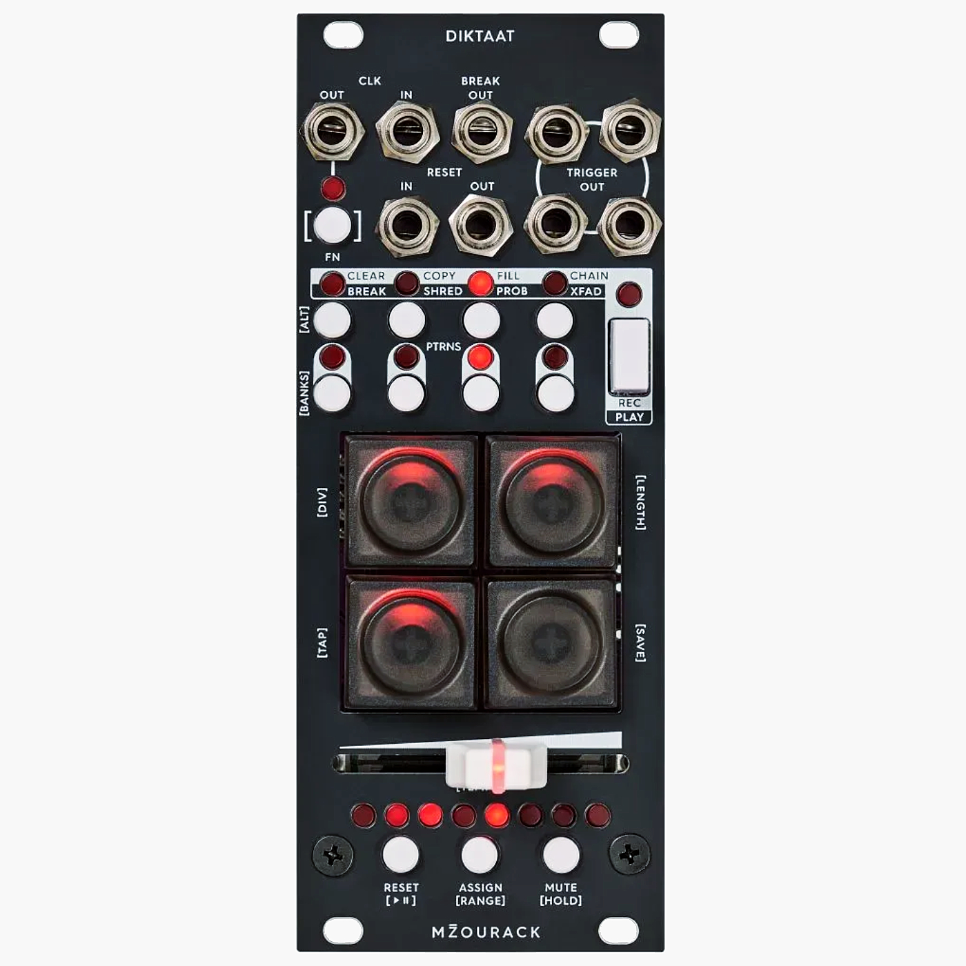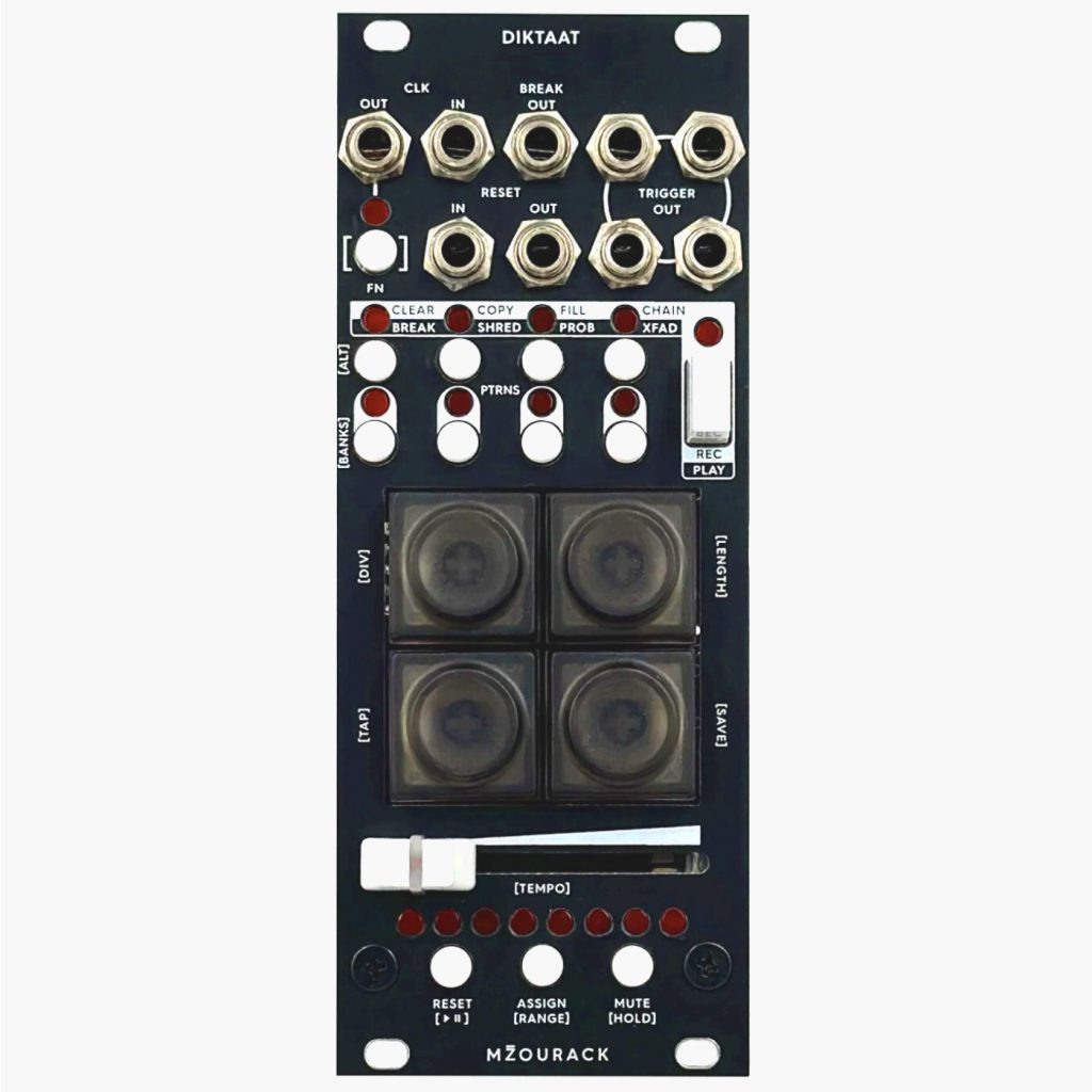 DIKTAAT is 4-channel performance-oriented trigger sequencer in 10HP. Create and mutate trigger sequences on the fly.