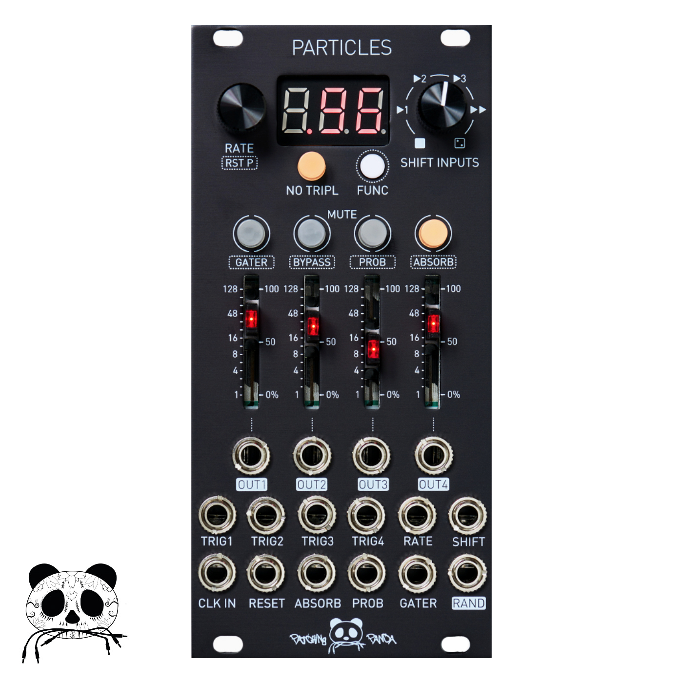 Patching Panda presents Particles, a four-channel trigger modulator that is designed for maximum playability and fun by adding variation and manipulation to your clock and trigger signals.
