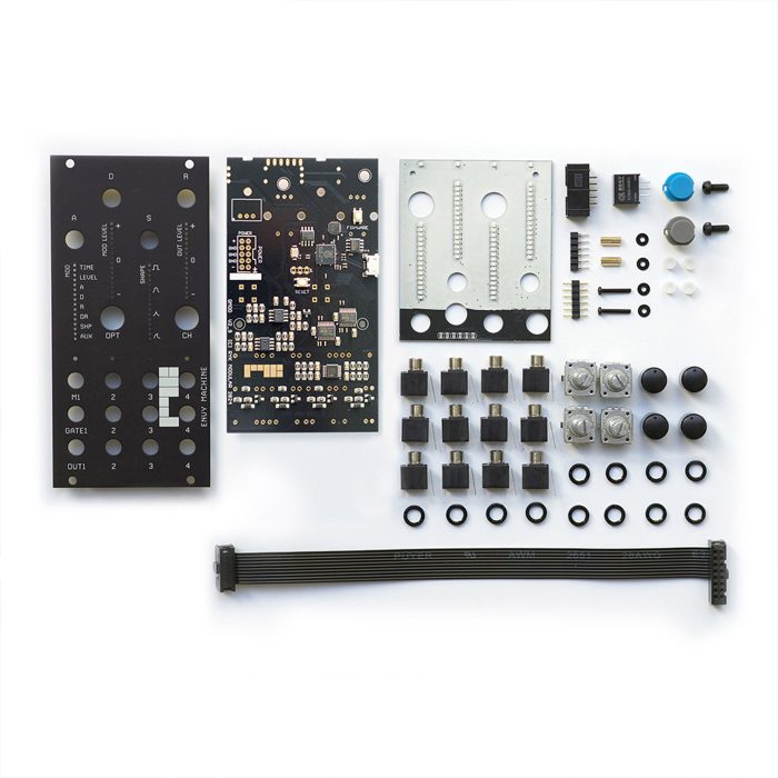 1xPCB (All SMD parts come already pre-soldered), a high quality screen printed 2mm aluminium panel, encoders, knobs, switches, LED display PCB, jack sockets.