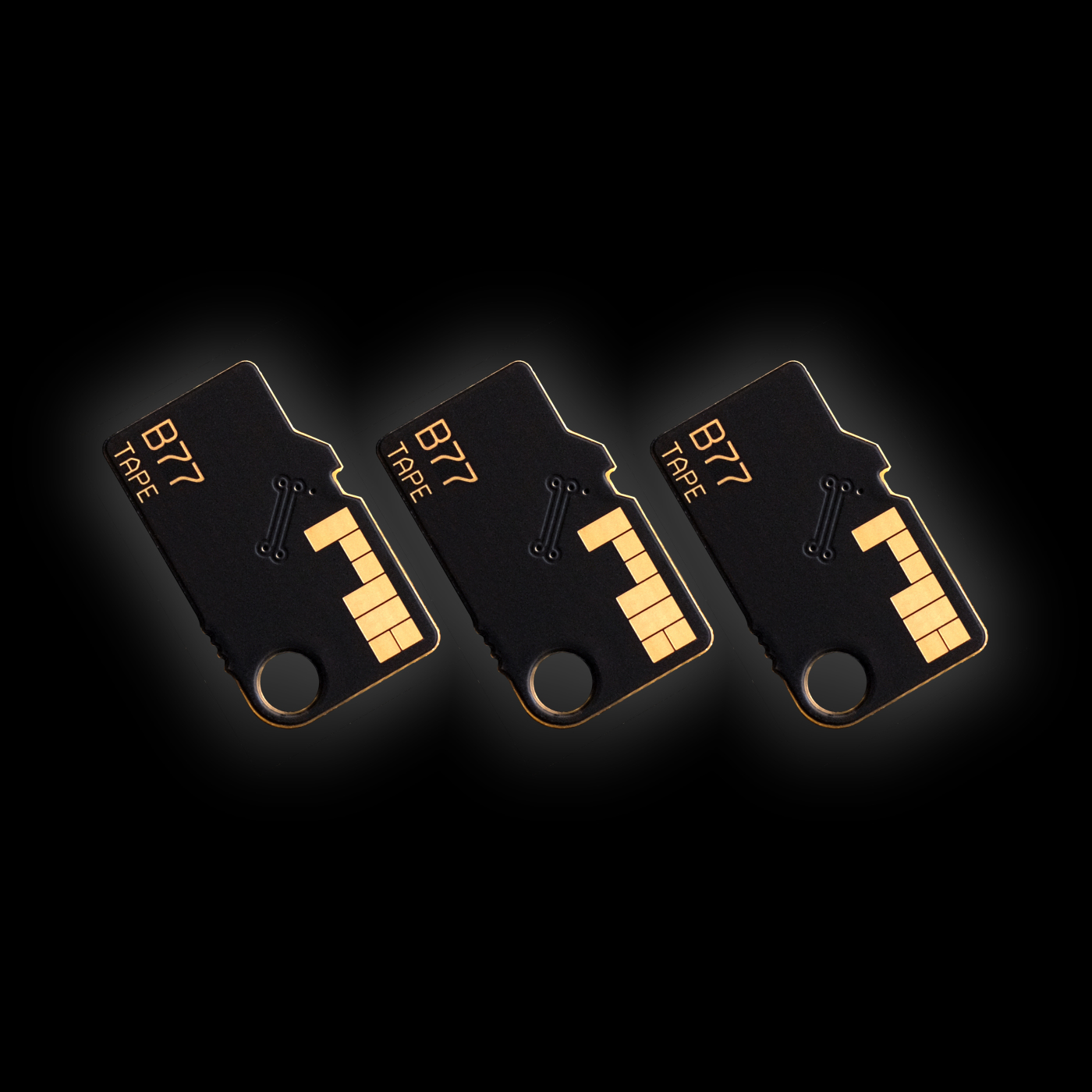 The B77 Tape Sampler card is an audio recorder for recording approximately 1.5 minutes of mono sound onto two separate tracks. Playback speed is continuously variable, as is the mix between the two tracks. Audio data is stored on the card and is kept between sessions, so multiple B77 cards can be used to store samples for different songs in a live set etc. This is a set of 3 cards.